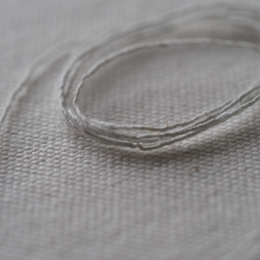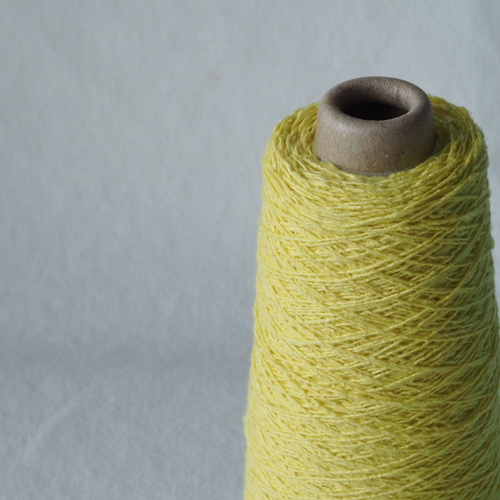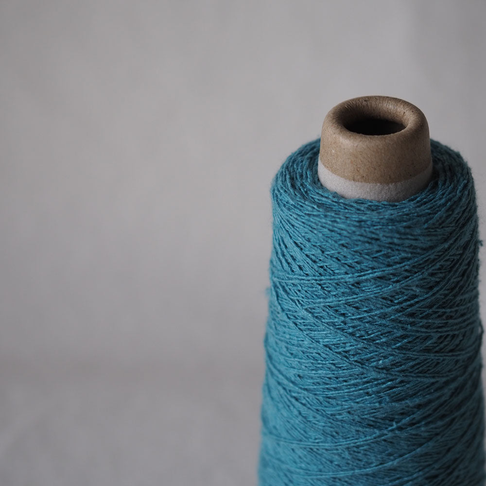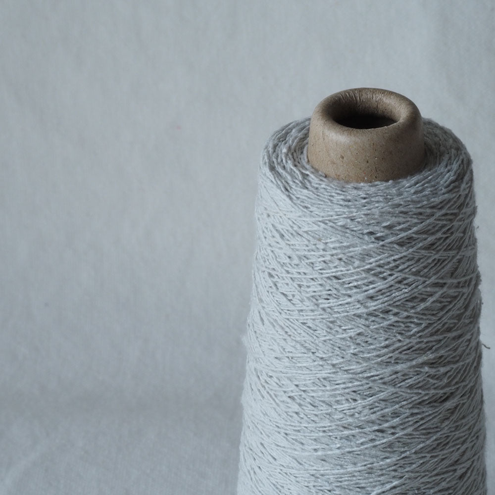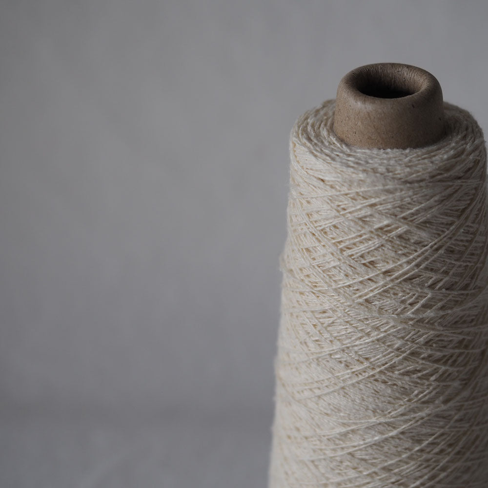 「紬糸」と呼ばれる種類のシルクで、絹紡糸を作る過程でできる短い繊維や屑繭(くずまゆ)を混ぜて糸にした再生糸です。ネップ(節)があり、柔らかくカジュアルな表情です。短い繊維を紡績しているので、一般的にイメージされるシルクような光沢はありませんが、光があたるとコットンやウールにはないツヤ感があります。シルクの吸湿性やUV吸収効果は同じですので、お肌にやさしく心地良い素材です。