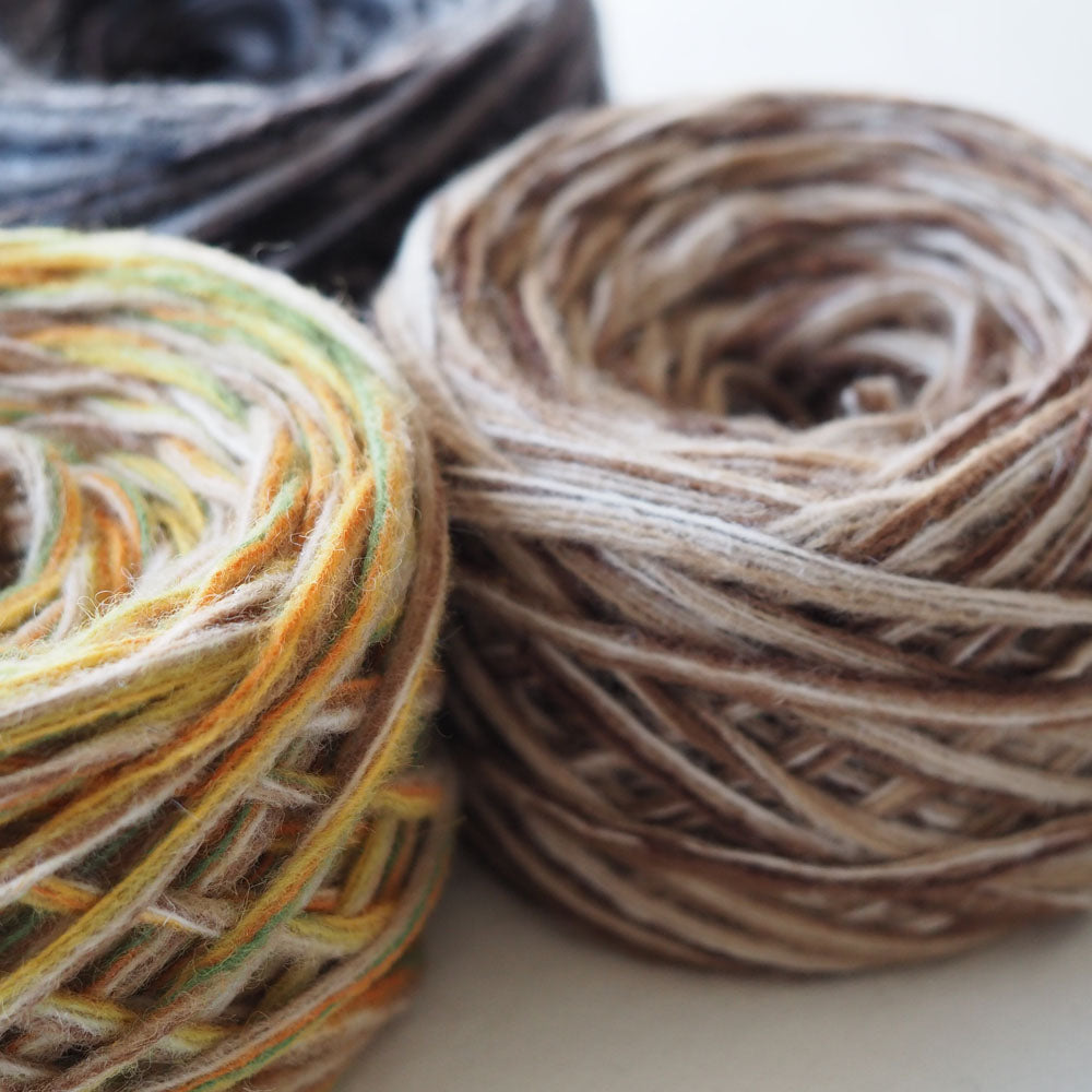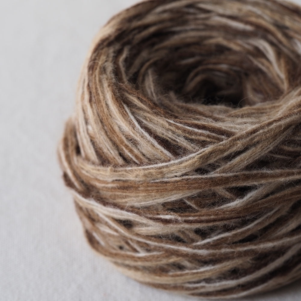 ラグ用のウールを専門にされている老舗の紡績工場さんに作ってもらった大変珍しい糸です。