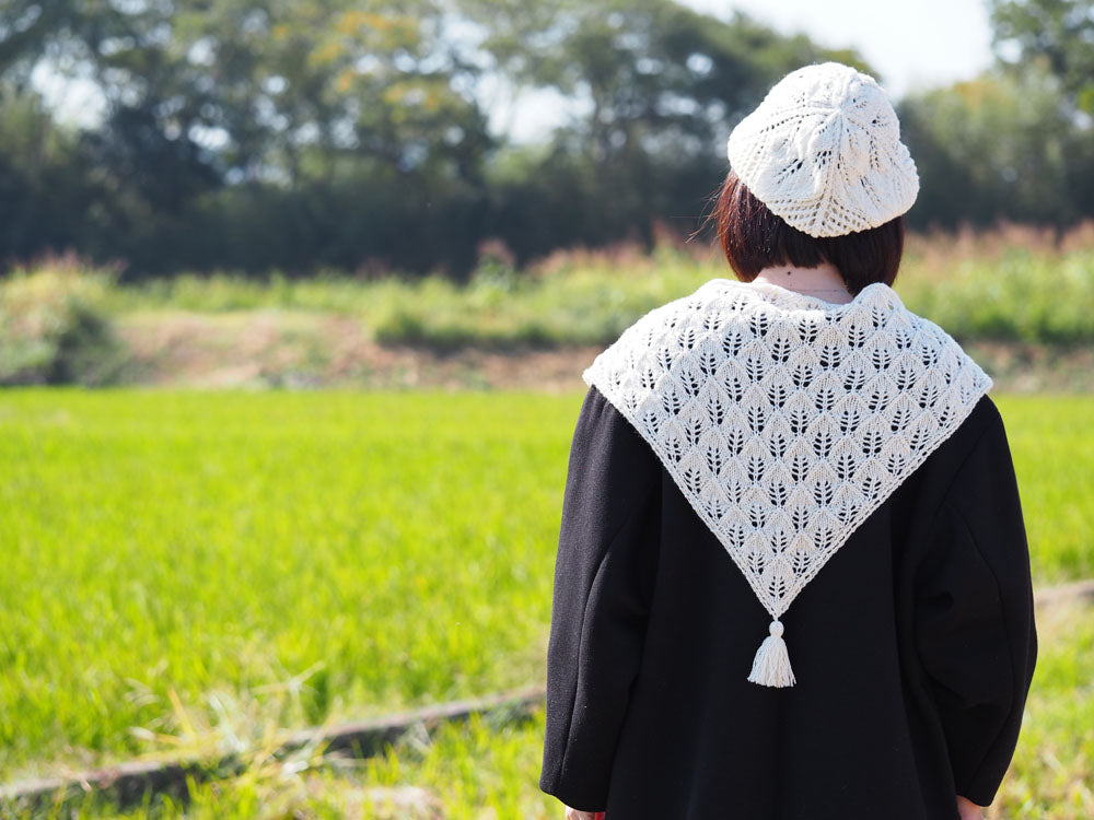 ブランケットで編むととっても軽く、ふんわり仕上がります。リーフ模様が楽しく、テンポよくあっという間に編めてしまいます。