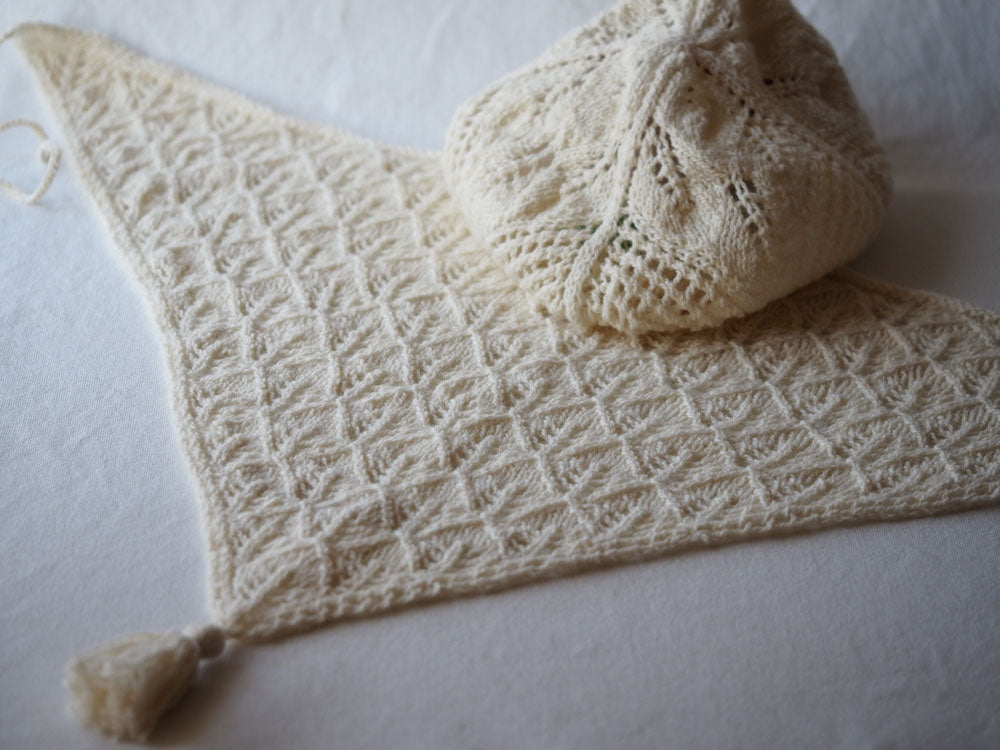 ブランケットでベレー帽と三角ショールの2つのアイテムが編めるお得なセットです。