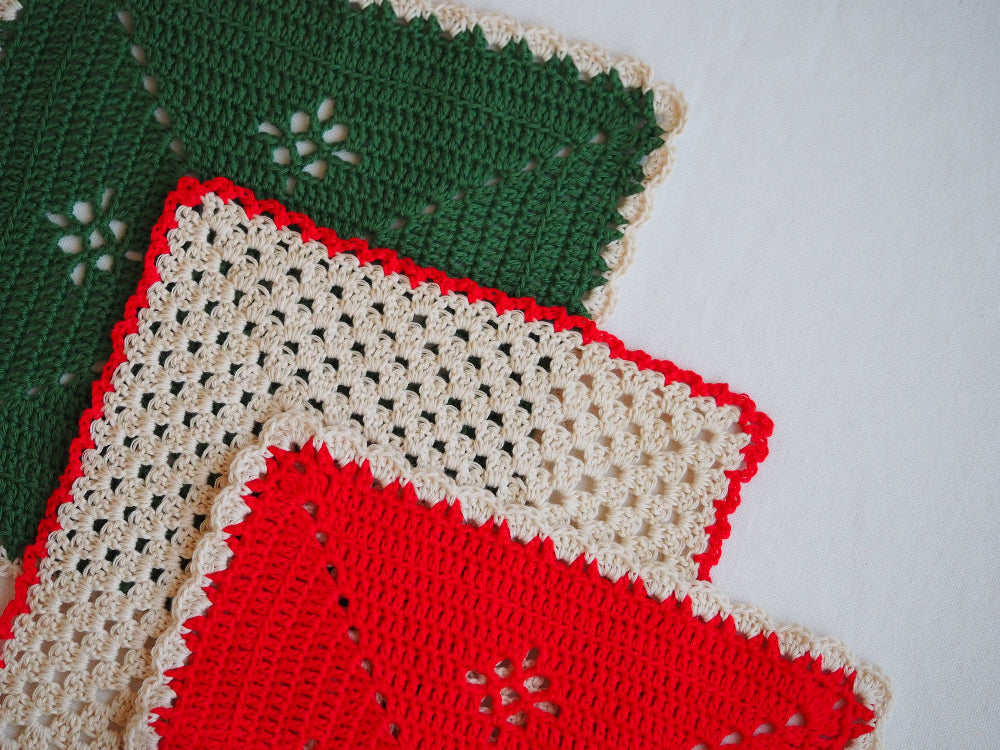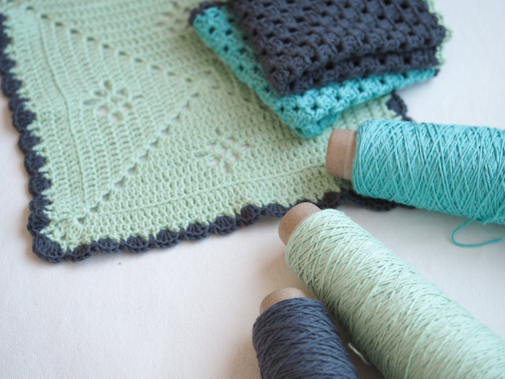1枚目「グラニースクエアのニッタオル」はYouTubeで公開していますので、ぜひご覧になってお持ちの糸で挑戦してみてください。