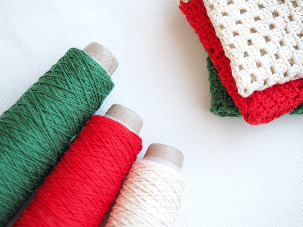 使用する糸は泉州タオルと同じ製法で作られた吸水性抜群のスフレコットンです。オールシーズン楽しんでいただけます。色違いでたくさん編んで、プレゼントにもおすすめです!